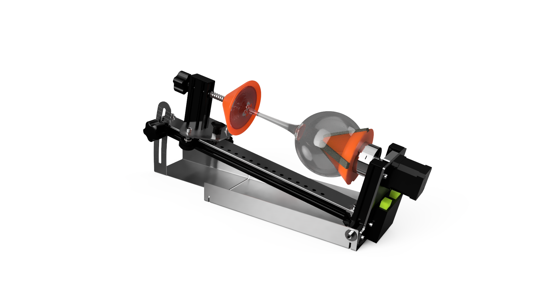 Gracias al ajuste de ángulo continuo de este módulo de grabado giratorio, puede grabar en ángulo. Esto le permite grabar perfectamente con láser objetos como copas de vino que son más difíciles. Gracias a la suspensión con resorte, el objeto siempre se centra perfectamente y la copa de vino se puede colocar y quitar rápidamente.